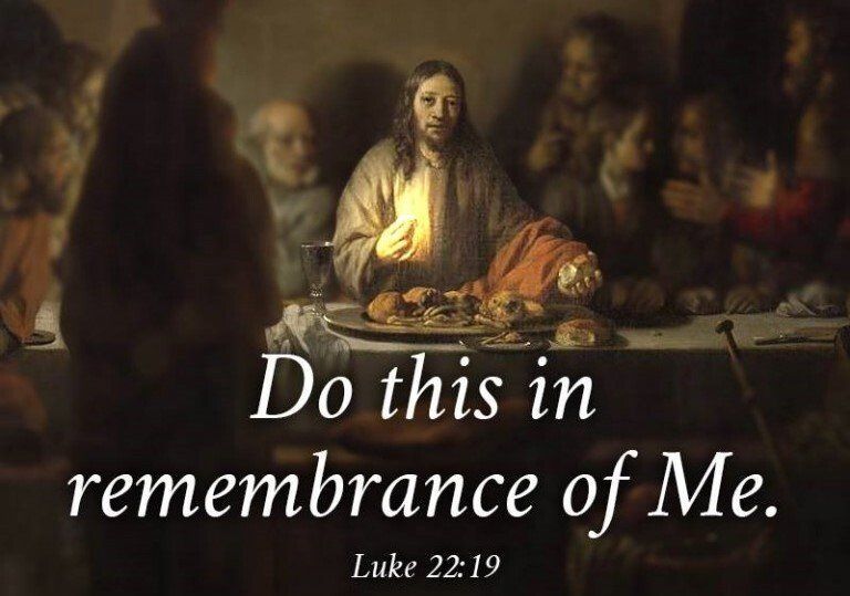 AT THE LAST SUPPER, JESUS BROKE THE BREAD AND SAID, "EAT, THIS IS MY BODY, DO THIS IN REMEMBERANCE OF ME." JESUS POURED WINE AND SAID, "THIS IS THE CUP OF THE NEW COVENENT IN MY BLOOD, DRING THIS IN REMEMBERANCE OF ME"