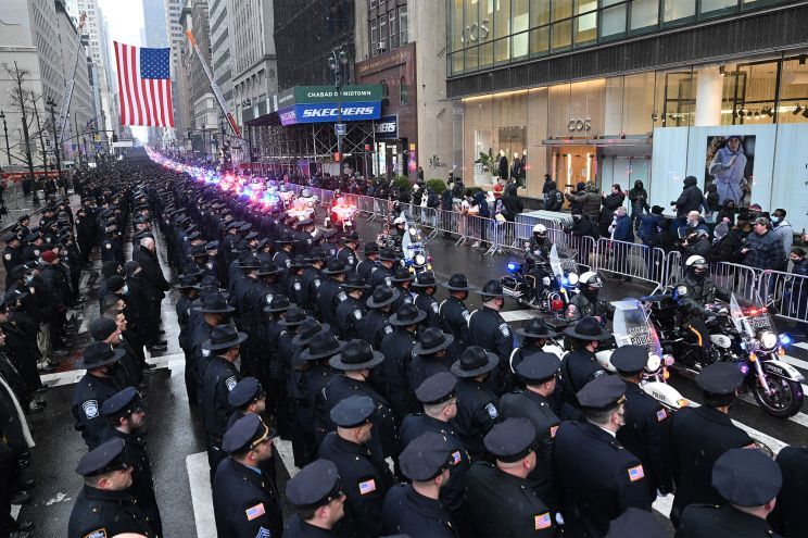1/27/2022: Thousands of NYPD Officers mourn slain Officer Jason Rivera in NYC.